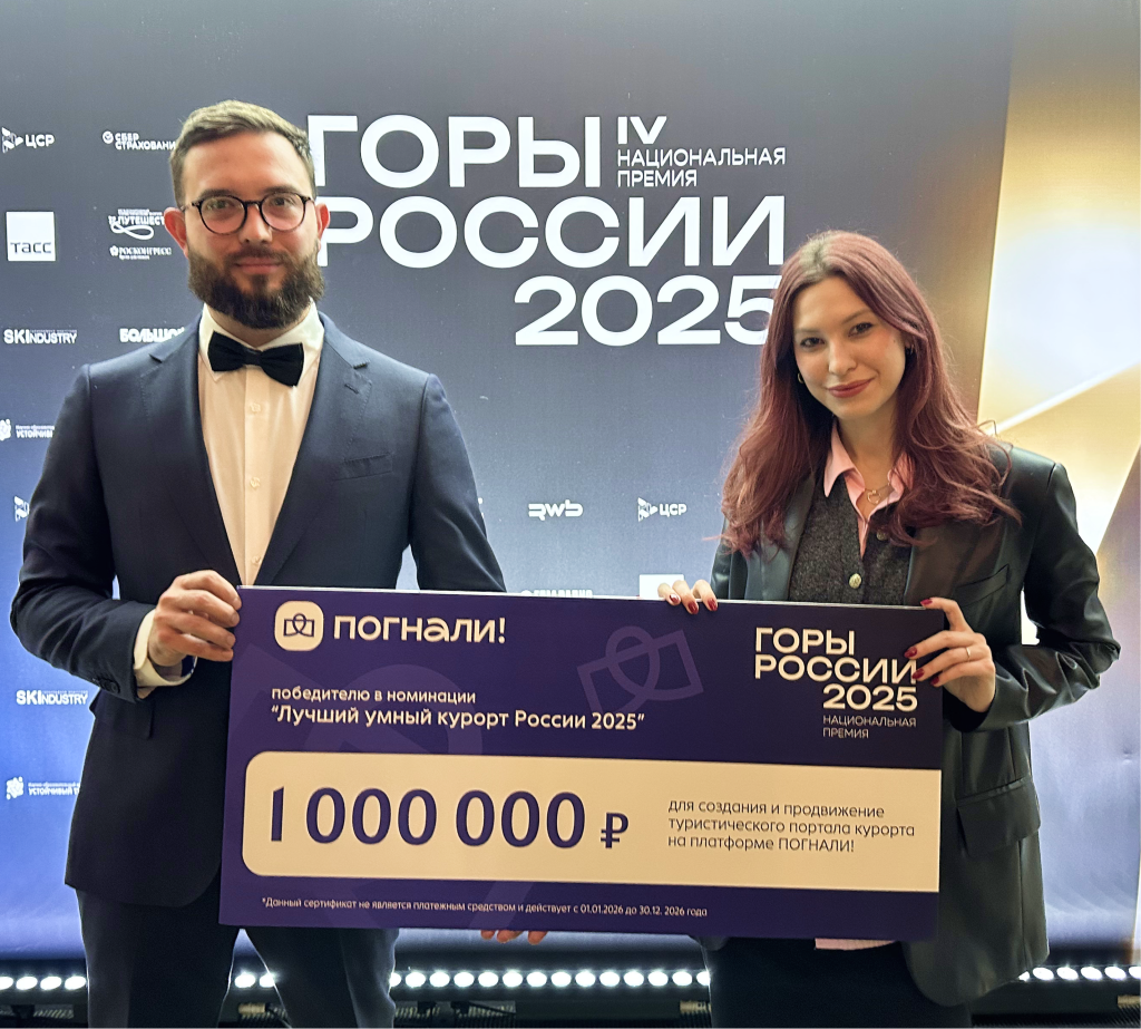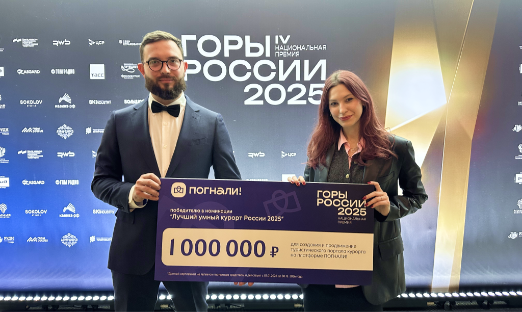 Российская туристическая платформа «Погнали!» вручила сертификат номиналом 1 000 000 рублей победителю в специальной номинации “Лучший умный курорт” за внедрение инноваций для устойчивого развития.